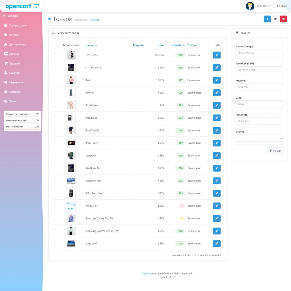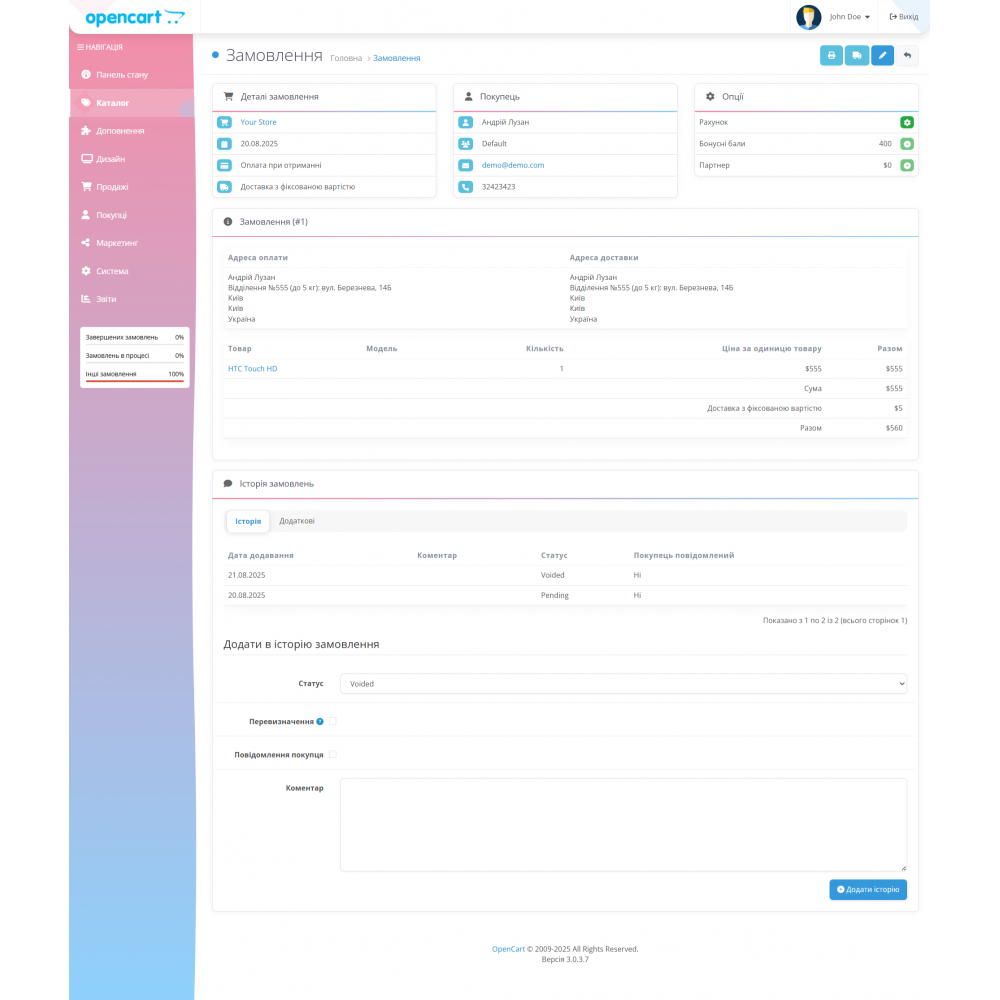 Оновіть свою адмін-панель OpenCart | OCstore ! Цей модифікатор оновлює стан..
